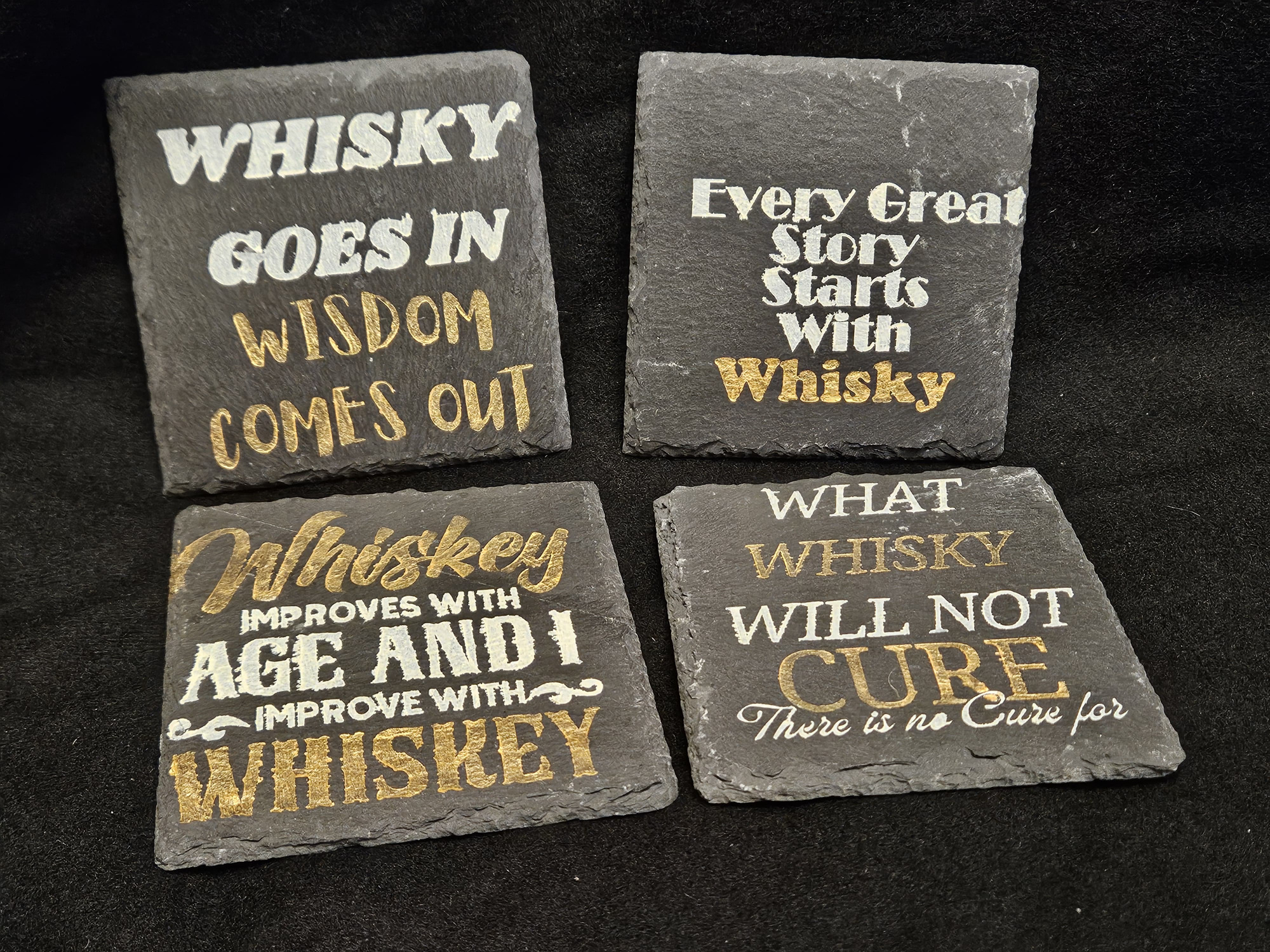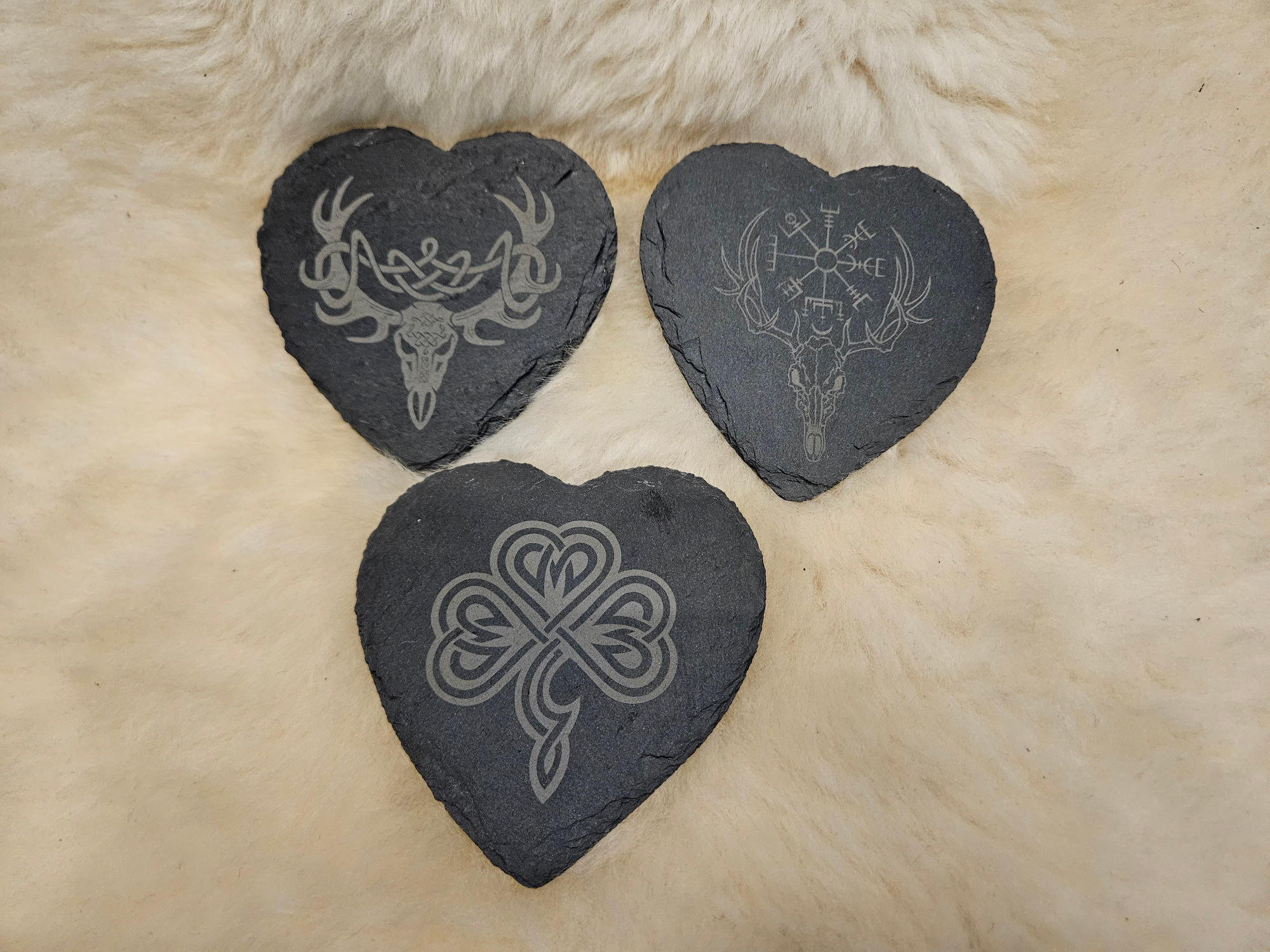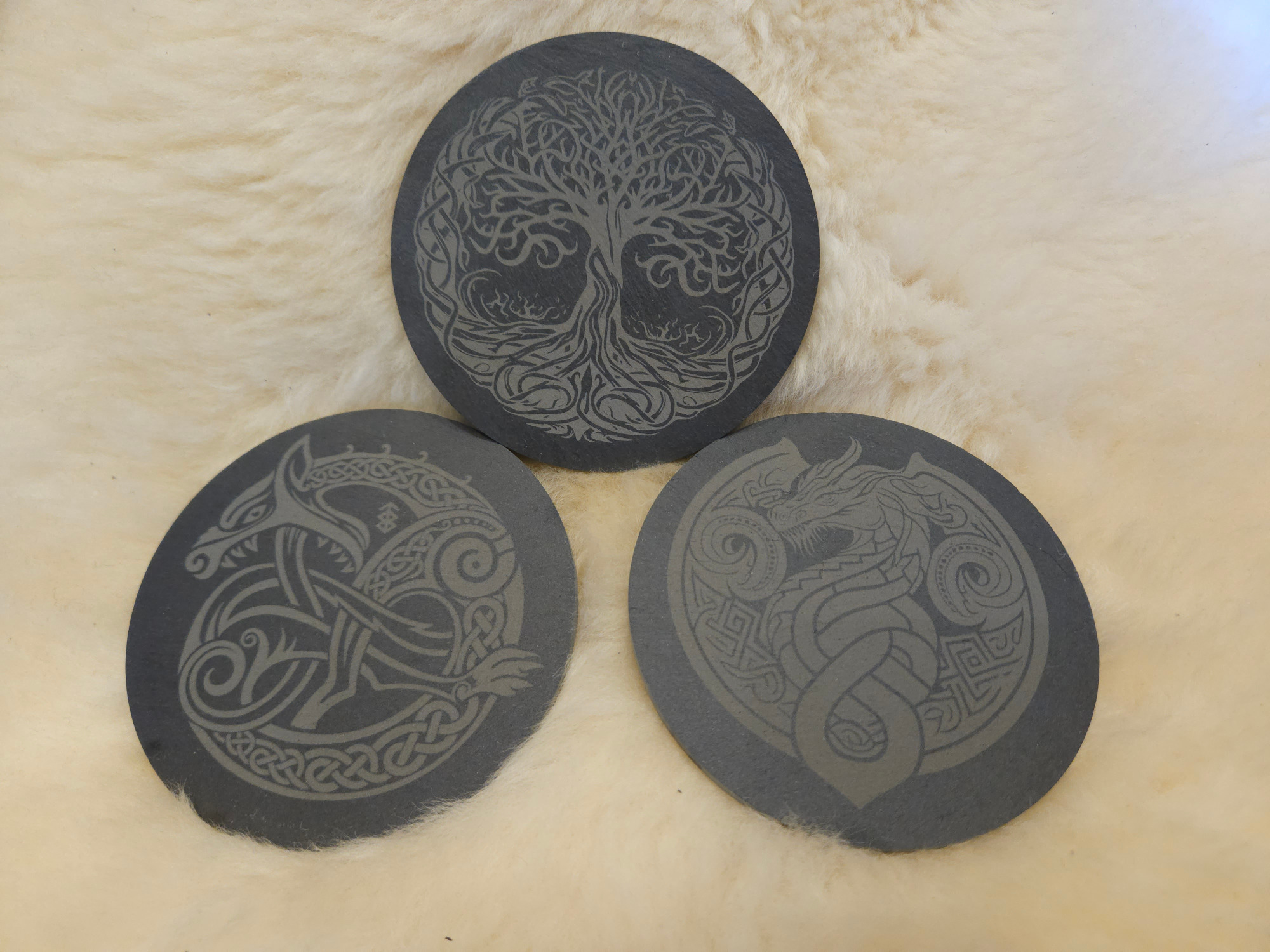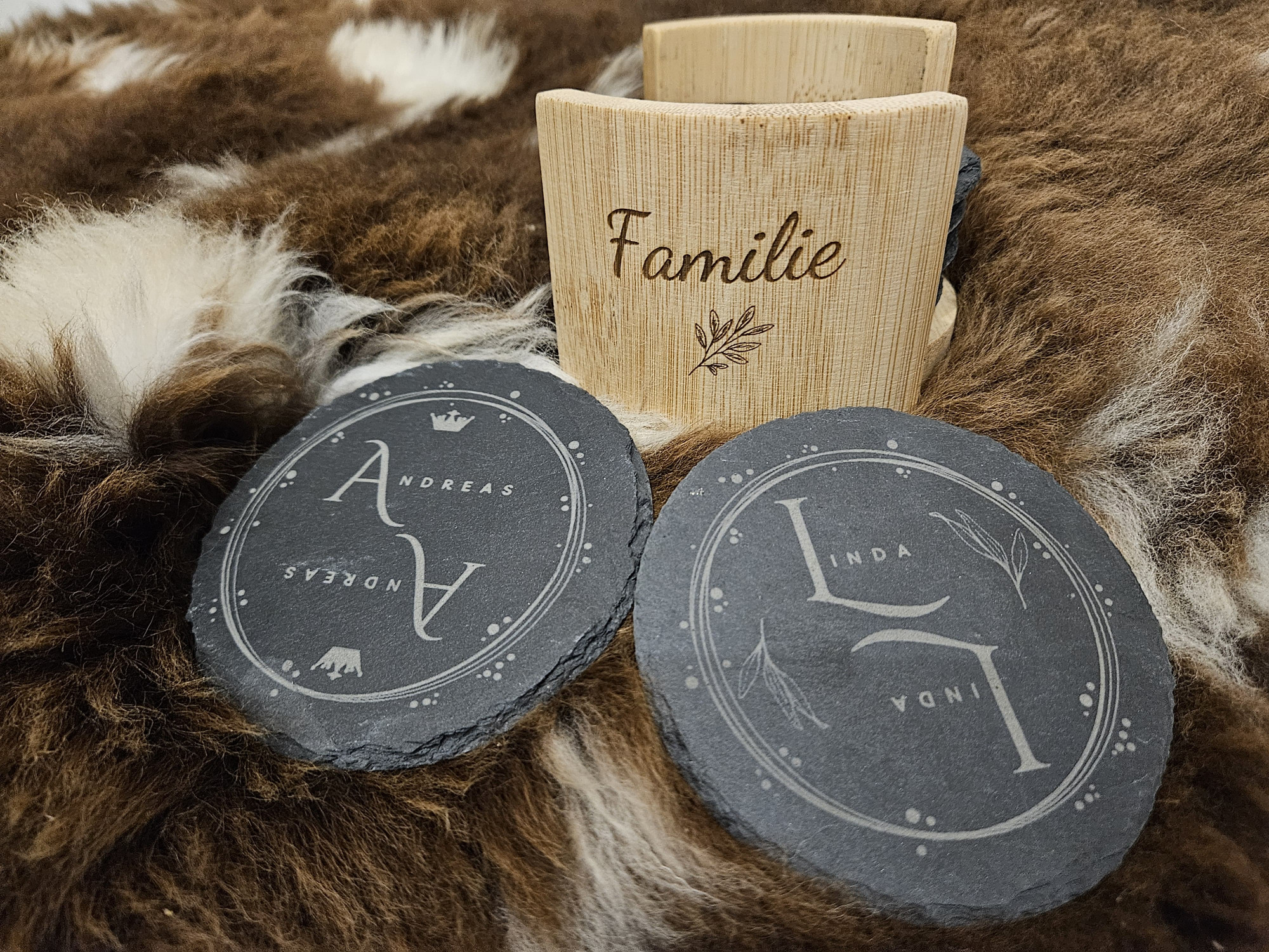 Schieferplatten, -Untersetzer und -Schilder in verschiedenen Größen, veredelt mit einer Lasergravur.