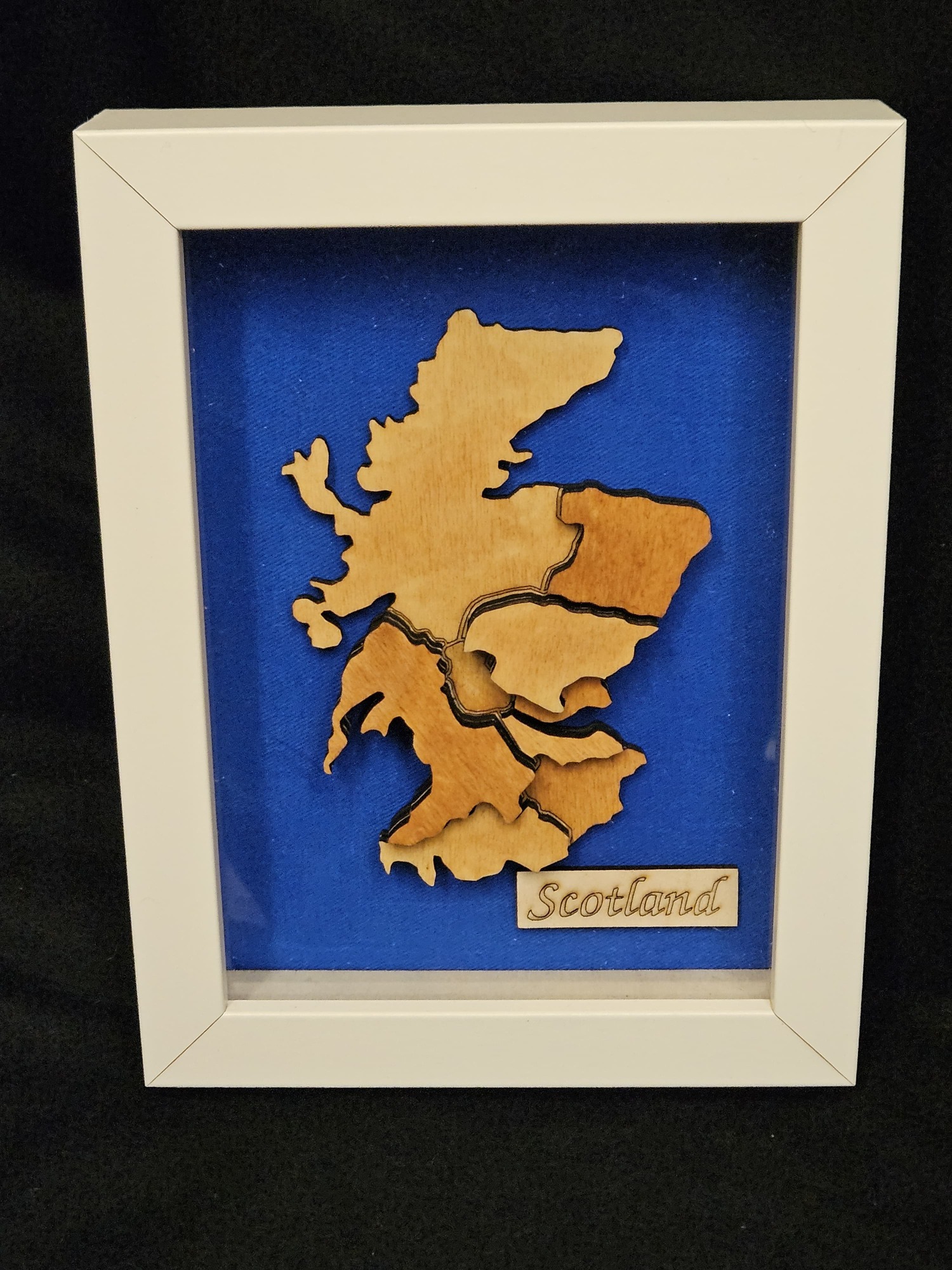 Diverse gerahmte Holzkarten in verschiedenen Designs und Optiken.