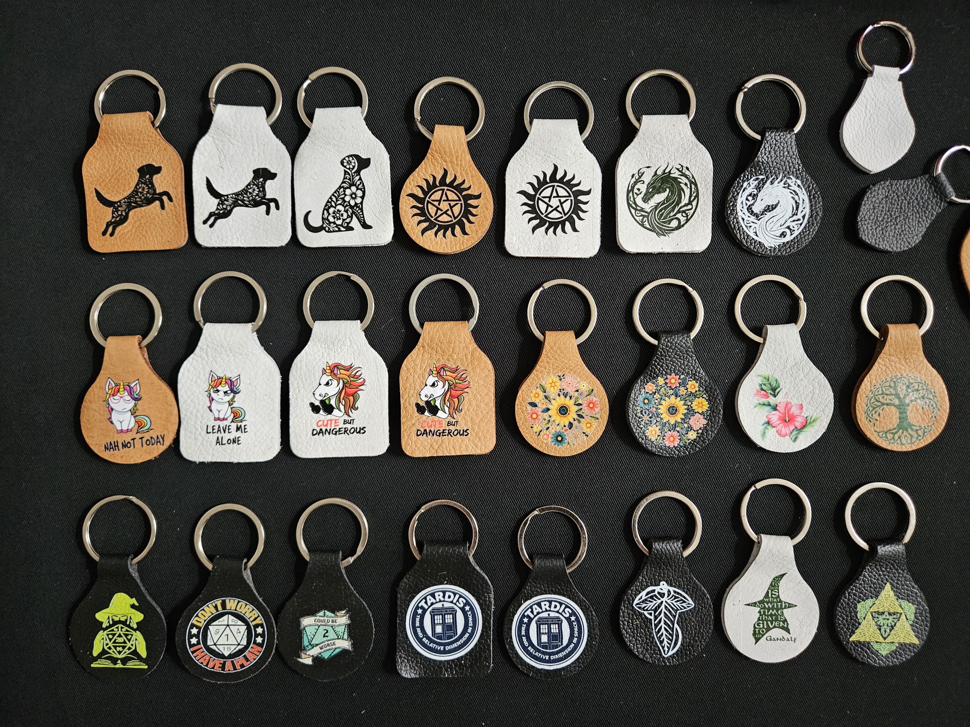 Schlüssel-, Baum- oder Geschenk-Anhänger aus Holz, Leder oder Filz.