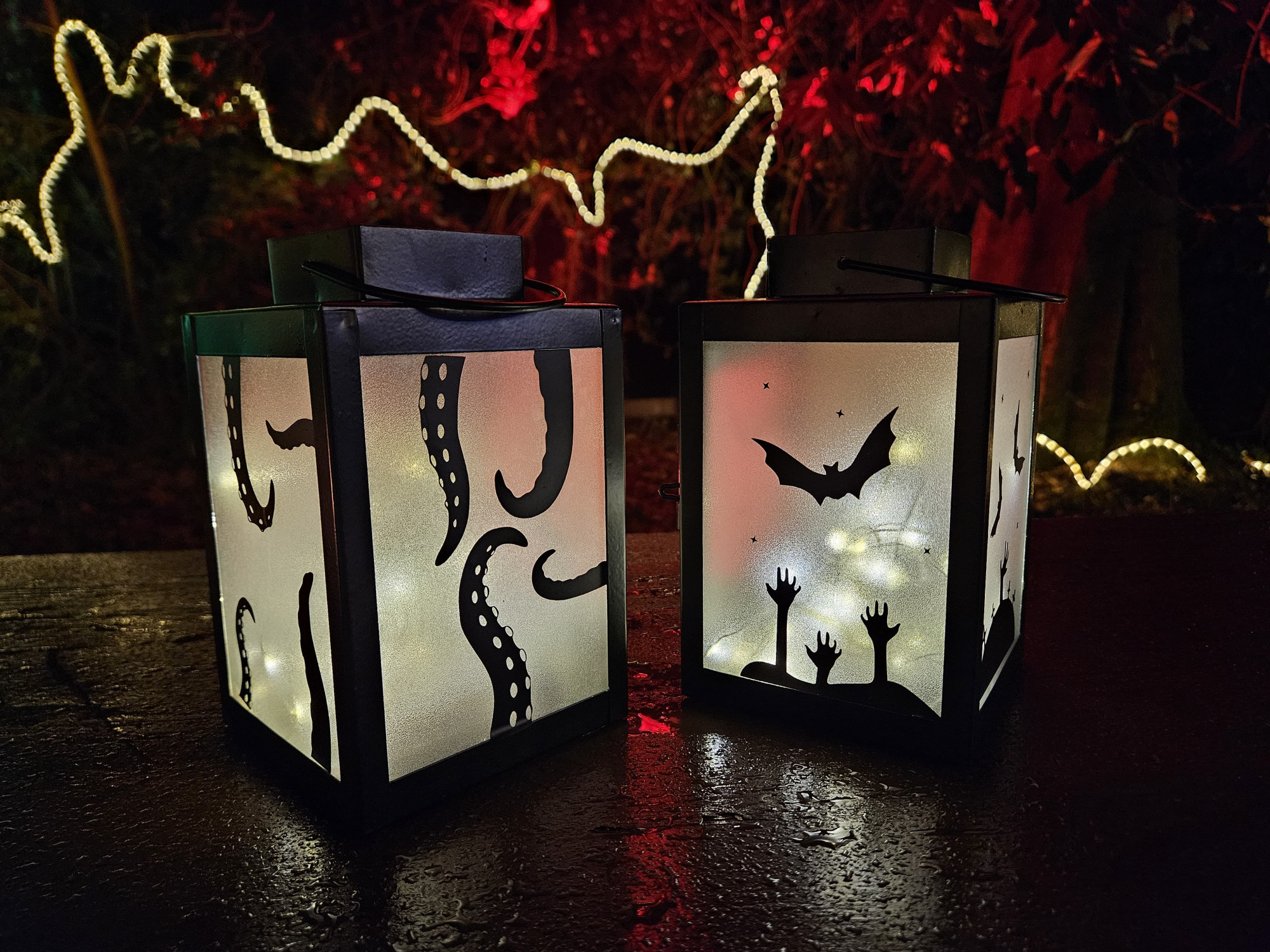 Laternen und Windlichter in verschiedenen Formen und Farben mit unterschiedlichsten Motiven.